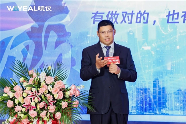 皖仪科技董事长、总经理臧牧先生在致辞中回顾了皖仪22年发展历程,系统阐述了企业的核心使命与愿景,并重点介绍了未来发展战略。他强调,新园区将成为皖仪发展的坚实底座,助力企业乘风破浪,成就行业领先地位。