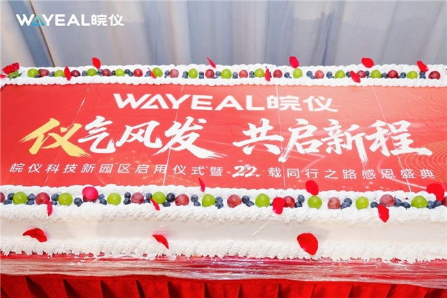 在万众期待中,典礼进入最激动人心的时刻。各位嘉宾共同登台,将手掌轻触启幕键,伴随着倒计时声和璀璨的灯光,皖仪科技新园区正式宣告启用。随后,臧牧董事长亲自切下特制的庆祝蛋糕,现场掌声雷动,气氛达到高潮。这一庄重而热烈的仪式,既是对过去22年辉煌成就的回顾,更是对未来美好前景的期许。